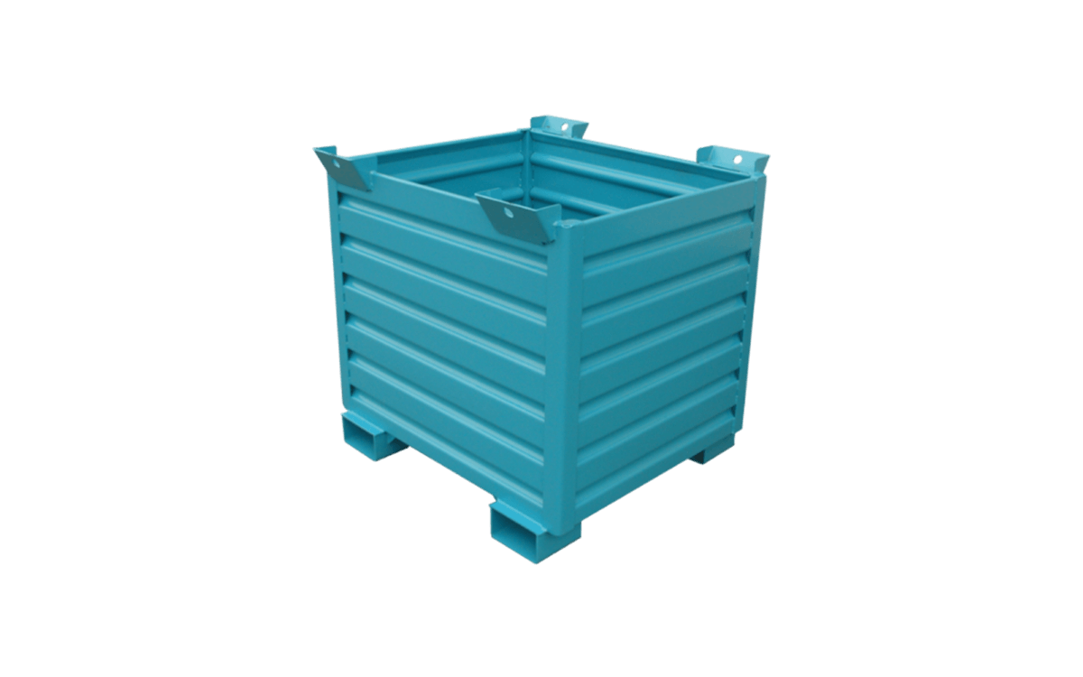 Blechbehälter, Stahlbehälter, Stapelbehälter mit Kranlöchern und Staplereinfahrtaschen