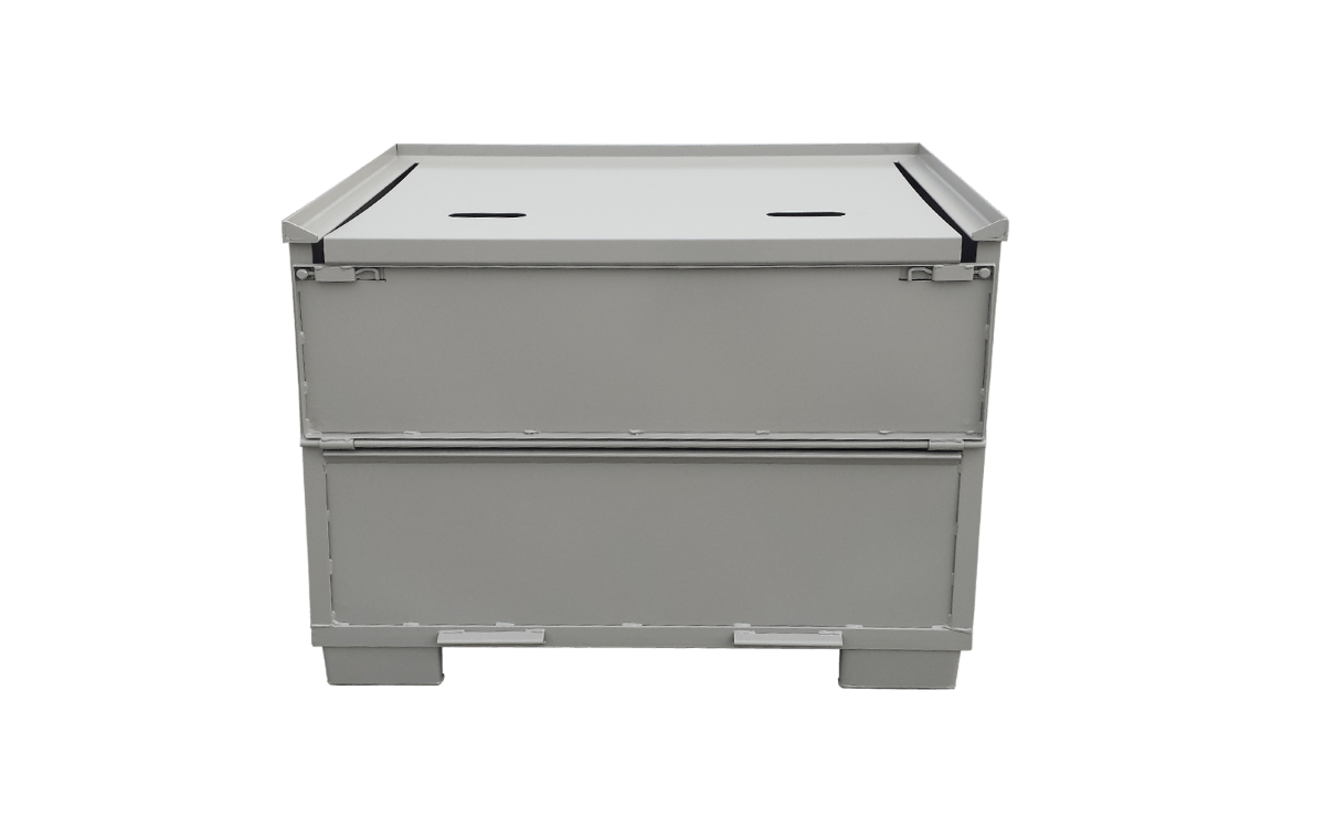 Unser hochwertiger Blechbehälter / Stahlbehälter mit Spezialklappe und Deckel bietet maximale Funktionalität und Sicherheit für Lagerung und Transport. Dank der robusten Stahlkonstruktion und der durchdachten Ausstattung mit einer Spezialklappe und einem stabilen Deckel eignet sich dieser Stapelbehälter ideal für industrielle Anwendungen.