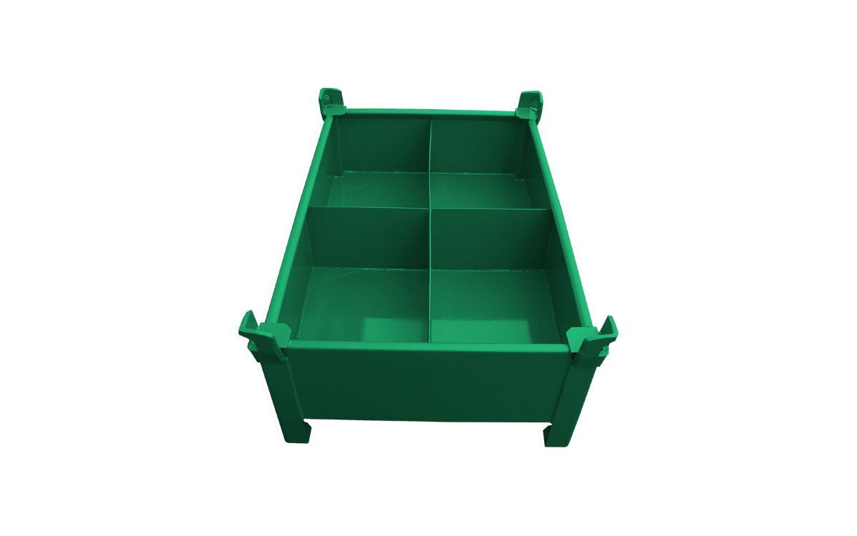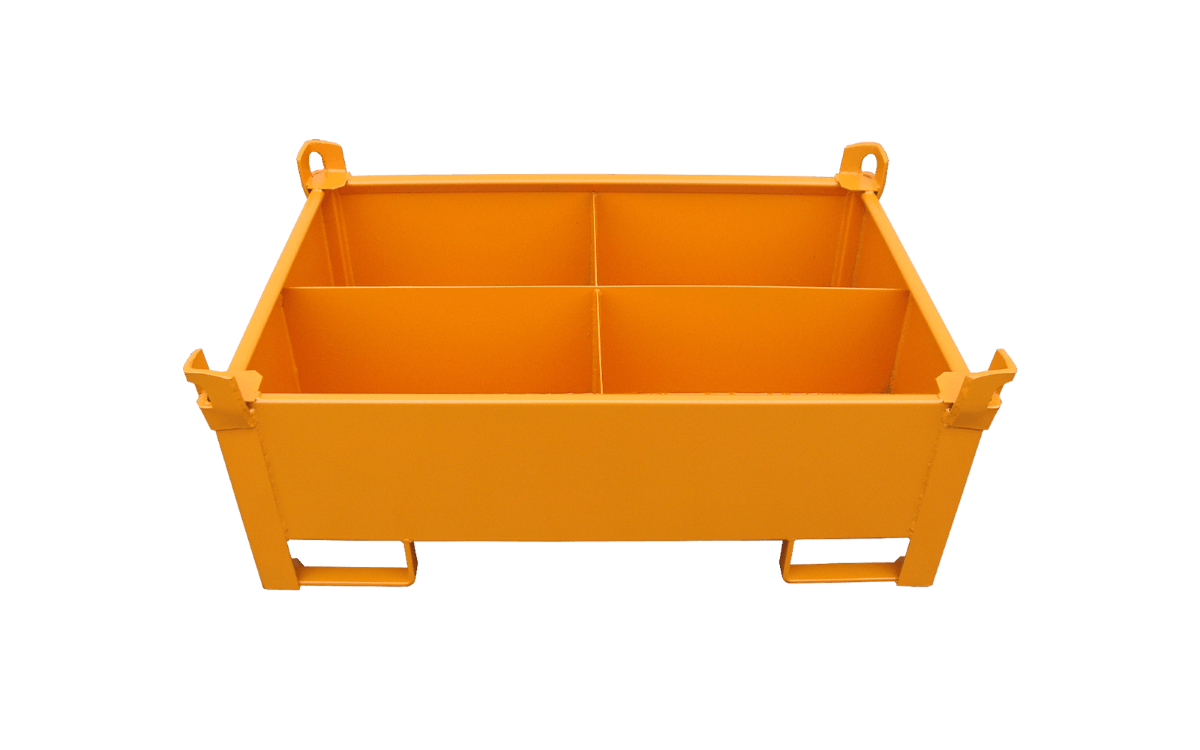 Blechbehälter, Stahlbehälter, Stapelbehälter mit Trennwand und Staplerschlaufen