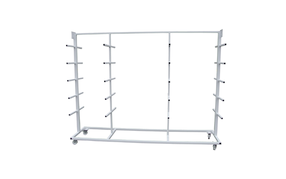 Unser Folientransportgestell / Folienlagergestell mit Rollen ist die ideale Lösung für die sichere und effiziente Lagerung sowie den einfachen Transport von Folienrollen. Dank der stabilen Konstruktion und der integrierten Rollen bietet dieses Gestell höchste Flexibilität und Mobilität für den Einsatz in Industrie, Produktion und Lager.