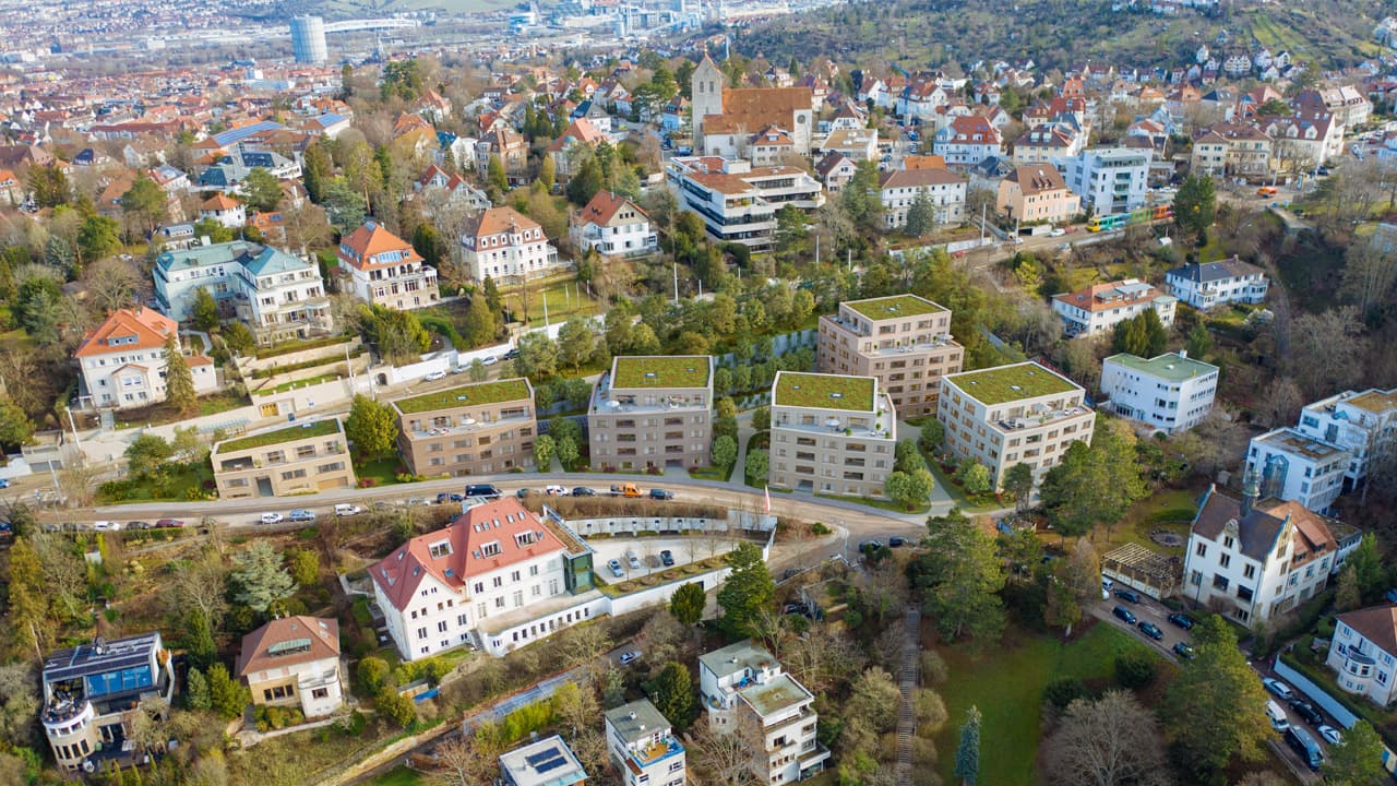 Das Ensemble aus modern interpretierten Punkthäusern entsteht im begehrten Stadtteil Gänsheide. Die Hanglage bietet einen spektakulären, freien Blick über die Stuttgarter Innenstadt.