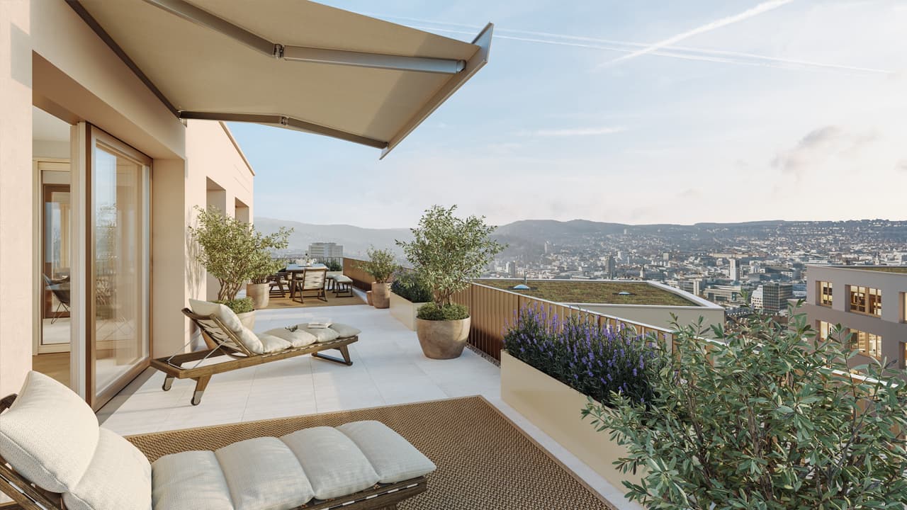 Die exklusiven Mietwohnungen und Penthäuser mit ein bis fünf Zimmern verfügen neben einer gemeinsamen Tiefgarage mit 101 Stellplätzen über großzügige Außenbereiche und eine hochwertige Ausstattung.